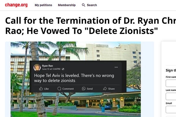 Hawaii Doctor calls for Zionists to be “deleted" off Earth